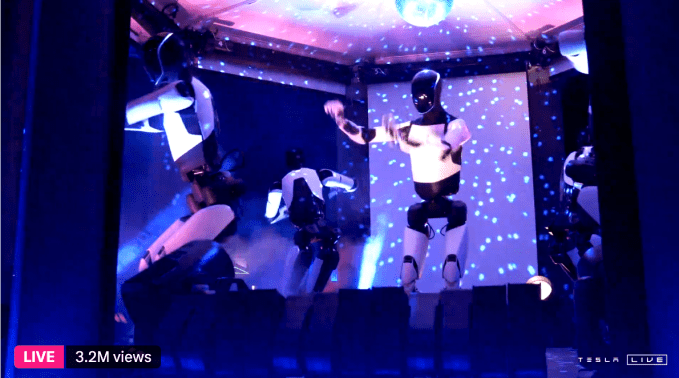 Then, a bunch of Optimus robots seemed to have a disco dance party in the middle of the event.